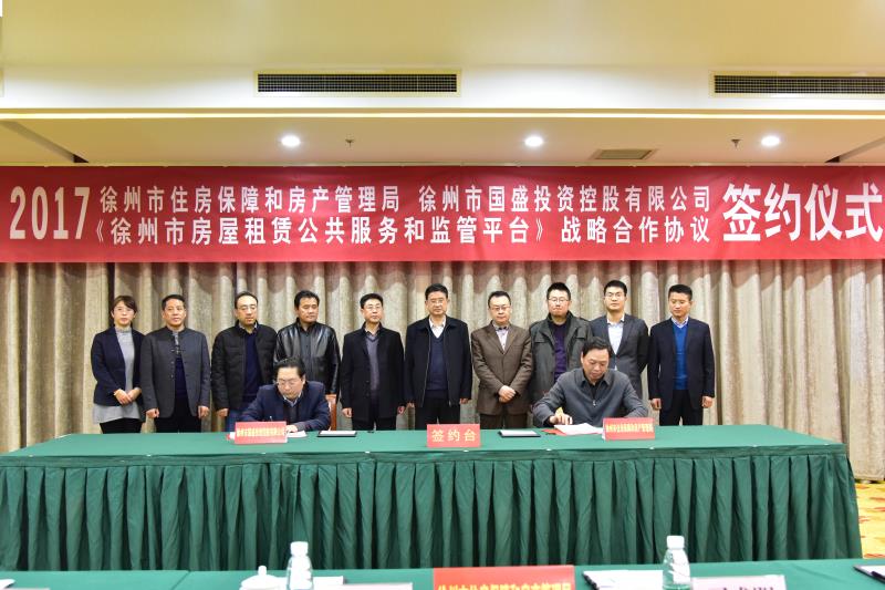 11月24日下午,徐州市住房保障和房產(chǎn)管理局與徐州市國盛投資控股有限公司在云泉山莊簽署《徐州市房屋租賃公共服務(wù)和監管平臺》戰略合作協(xié)議。徐州市房管局局長(cháng)閆軍、副局長(cháng)司成明,國盛公司總經(jīng)理李中亞等領(lǐng)導出席會(huì )議并講話(huà)。